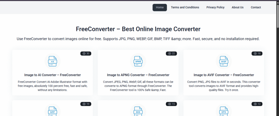 - FreeConverter – This online free file converter offers tools to convert videos, audio, images, and documents. Its free video converter supports MP4, AVI, MOV, and more formats efficiently.